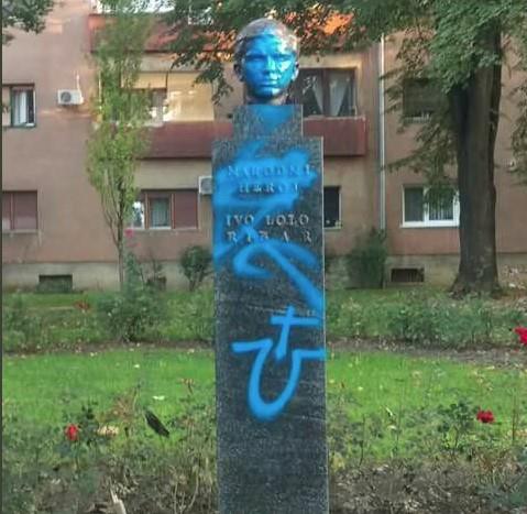 Bistu partizanskog heroja Ive Lole Ribara, koja je pre sedam dana vraćena u park u Prilazu baruna Filipovića u Zagrebu, vandali su danas išarali plavim sprejom, a ispod imena i prezimena nacrtali ustaška obeležja, prenela je agencija Hina.Zagrebačka policija potvrdila je da je u jutarnjim satima primila dojavu o tom vandalizmu.