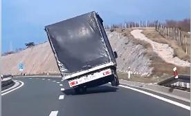 RIJEKA - Jak vetar na riječkoj obilaznici u više navrata je podigao kamion na dva točka i zamalo ga oduvao sa puta.