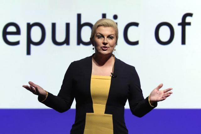 Hrvatska prdesednica Kolinda Grabar Kitarović je u Vukovar došla obučena u žute borovo čizme.