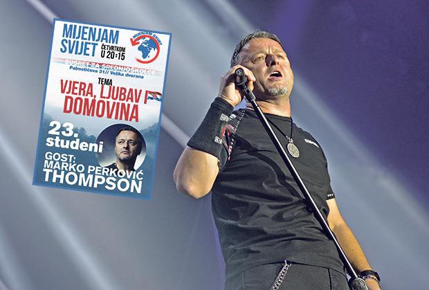 ZAGREB - Kontroverzni hrvatski pevač Marko Perković Tompson, poznat po stihovima u kojima poziva na klanje Srba, održaće danas zagrebačkim srednjoškolcima predavanje na temu „Vera, ljubav i domovina“ u okviru projekta „Menjam svet“ Studentskog katoličkog centra.
