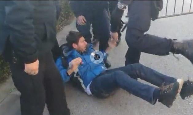 ZAGREB - Poslanika Živog zida u hrvatskom Saboru Ivana Pernara policija je bacila na zemlju.