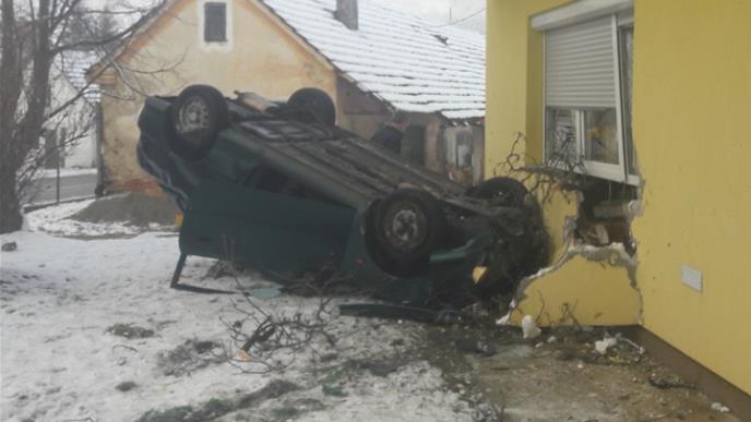 Mladi vozač "hjundaija" sleteo je sa ulice, ušao u dvorište jedne porodične kuće i zabio se u zid dnevne sobe. Uprkos prevrtanju na krov i udarcu u zid, vozač automobila ostao je nepovređen.