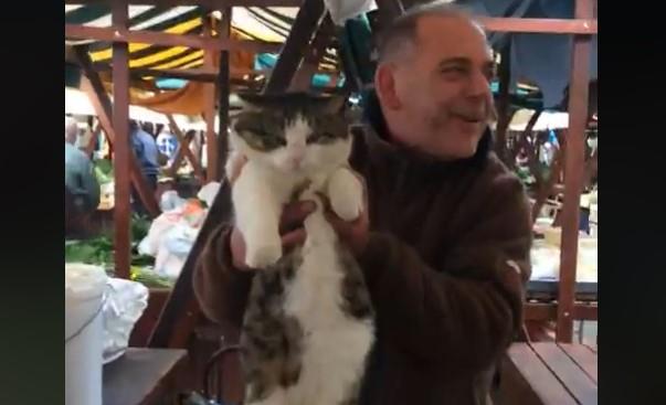 ZADAR - Mačak Glavonja živi na zadarskoj pijaci, a najbolji prijatelj mu je Vlado Pedisić (55) koji tamo ima tezgu