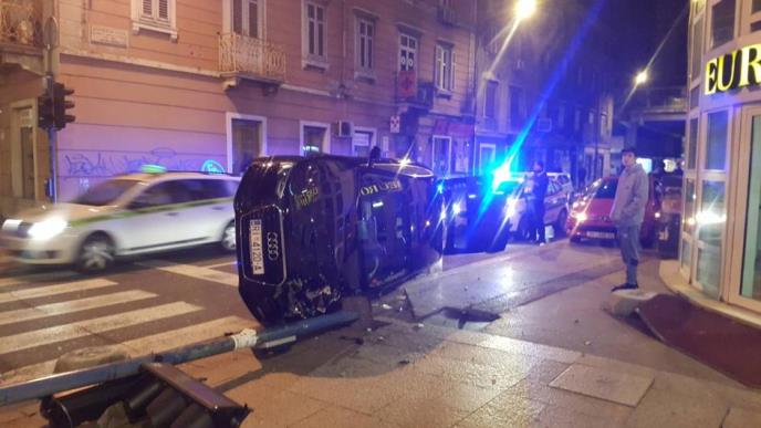 Jedan vozač "audija" je nešto posle ponoći izgubio kontrolu nad vozilom u Rijeci, pa je pokosio semafor i onda završio na boku.