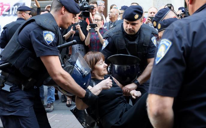 One su mirno sele pred povorku od, kako procenjuje policija, 10.000 ljudi. Policajci su ih odmah krenuli da ih privode, strpali su ih u marice, a kolona marša je nastavila prema trgu Bana Jelačića.