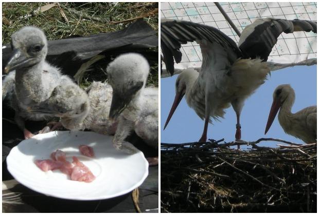 "Malena je ovog proleća snela čak šest jaja. Ona i Klepetan stalno se smenjuju u gnezdu, znaju da od potomstva nema ništa ako se jaja ohlade. Zato i Klepetan sada, kad Malena siđe na ovu livadu da protegne noge, očinski greje dva preostala jajeta, iz kojih će se, nadam se, za koji dan izleći ptići", kaže on i podseća da je ovaj poznati par za 16 godina na svet doneo 58 ptića (sa ovih 6 biće ih 64).