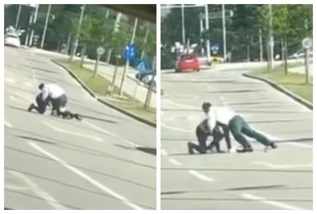 Razlog i epilog fizičkog sukoba još nisu poznati, a ratoborni dvojac nisu omeli ni vozači koji su ležerno vozili putem.