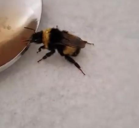 Ona mu je čak ponudila da se okrepi jer je delovao slabašno. Tako je mali bumbar pijuckao napitak od vode i šećera koji mu je gospođa pripremila kako bi došao k sebi.