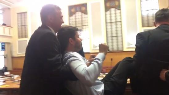 "Ovo je politika HDZ-a! Ovo je diktatura! Ovo nije demokratija u Hrvatskom saboru! Ovo je način na koji se suzbija svaka rasprava!" uzvikivao je dok su ga iznosili pred salu, gde su ga već čekali novinari.