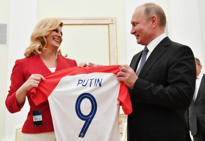 MOSKVA - Predsednica Hrvatske Kolinda Grabar-Kitarović danas je u Kremlju predala ruskom predsedniku Vladimiru Putinu crveno-beli dres hrvatske fudbalske reprezentacije sa brojem 9 i ispisanim imenom Putina na njemu.