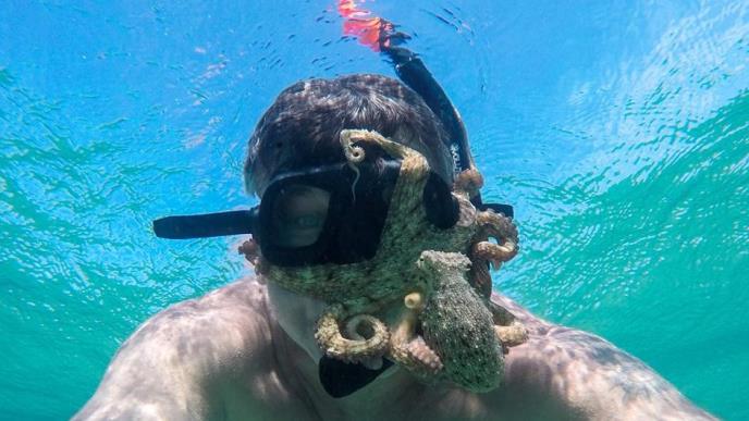 IZNENAĐENJE U MORU: Ronio blizu obale, pa mu se hobotnica obmotala oko maske (VIDEO)