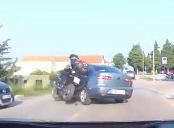 ZADAR - U saobraćajnoj nesreći koja se dogodila u Vodicama vozač motora udario je u automobil koji jemiznenada odlučio da skrene.