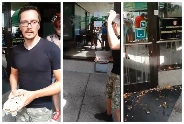 HRVATSKA JAVNOST BESNA: Policija u Zagrebu privela 2 opozicionara koja su jajima gađala Ministarstvo zdravlja u znak protesta zbog smrti Matea Ružića (21) u Zaprešiću