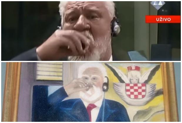 ZADAR - Slika na kojoj je prikazano samoubistvo osuđenog ratnog zločinca Slobodana Praljka nedavno je osvanula u Gradskoj biblioteci Zadar.