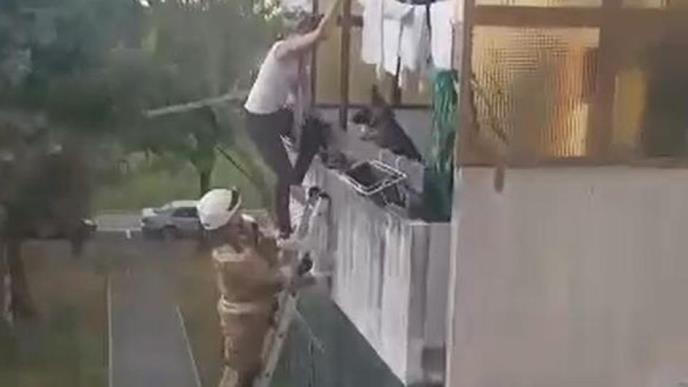 Inače, kad su stigli na lice mesta, oni nisu prvi počeli da se penju uz merdevine jer je na balkonu bio nemački ovčar, pa su pustili devojku da prva krene. Kad se popela na balkon, smirila je psa koji je lajao i ušla u stan. Nije poznato da li se dečko, koga je očigledno svladao umor, ubrzo probudio i video da zbog njega intervenišu vatrogasci.