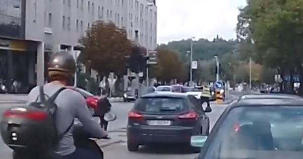 Jedan automobil umalo je udario policajca koji reguliše saobraćaj. Ovaj incident se dogodio na raskrsnici u Splitu.