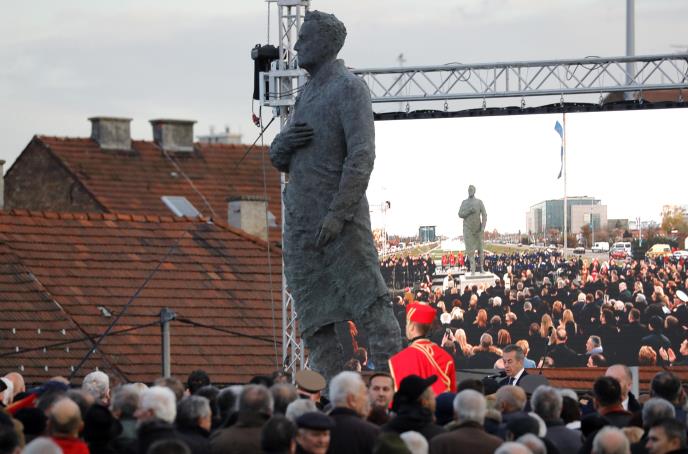 Još jedan u nizu spomenika kojih ima širom Hrvatske, otkriven je na ceremoniji kojoj je prisustvovao državni vrh uključujući predsednicu Kolindu Grabar-Kitarović, premijera Andreja Plenkovića ali ne i gradonačelnika Zagreba Milana Bandića.