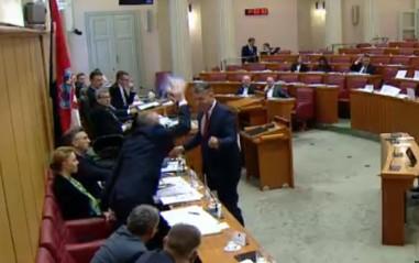 Dok je jednu pružao Plenkoviću, Krstičević mu je drugu besno iščupao iz ruke i divljački bacio na pod. Na snimku se vidi kako Plenković vuče za sako Krstičevića i smiruje ga.