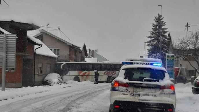 Autobus je posle sudara skliznuo s puta zbog snega i udario u kuću, dok je kamion završio u susednoj ulici.