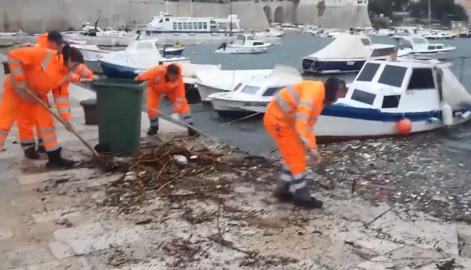 Jak vetar koji je duvao u Dubrovniku naneo je više od 25 kubika smeća u dubrovačku luku.