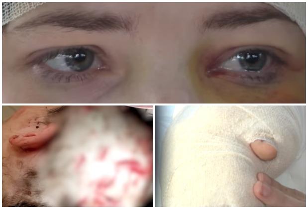Njoj su konstatovani višestruki prelomi lobanje, potpuno smrskana šaka, rana i podliv ispod oka, 13 rana za šivenje i zaostale komadiće metala u glavi.