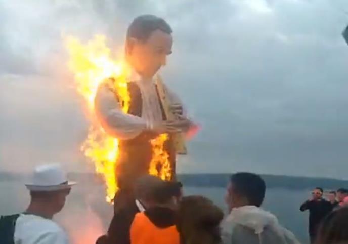 Nakon što je u subotu u Kaštel Sućurcu u Hrvatskoj zapaljena lutka sa likom Milorada Pupovca, danas je viđena ista scena i u Kaštel Starom.