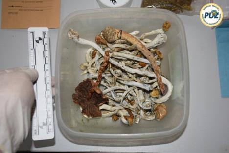 Sudski nalog im je omogućio pretres prostorija u širem centru Zagreba. Pronašli su 398,2 grama marihuane, 25 grama ekstrakta konoplje zatvorene u tri plastične kutijice i dve cigarete. U jednoj kesici je imao tabletu ekstazija, ali su posebnu pažnju privukle sušene halucinogene pečurke.