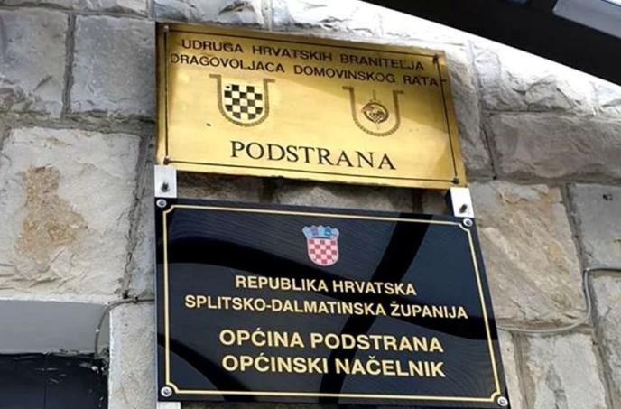 Na službenom ulazu u HDZ Opštinu Podstrana, u splitsko-dalmatinskoj županiji, postavljena je skandalozna tabla Udruženja hrvatskih veterana.