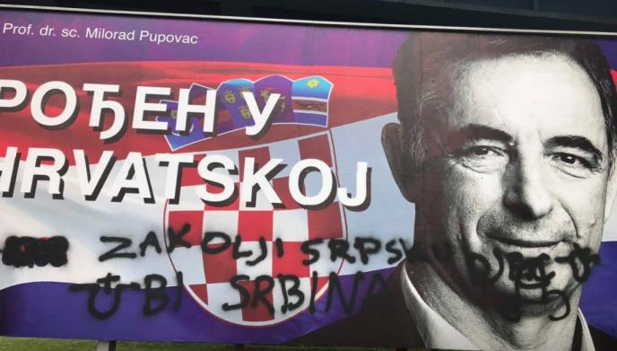 Na predizbornom plakatu Milorada Pupovca ispisane poruke mržnje.