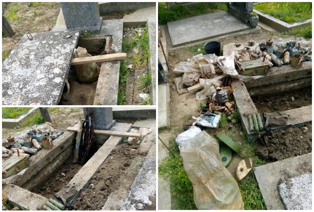 Komunalci iz Borovig sela su juče pri otvaranju grobnice osobe koja je preminula 1945. godine na dubini od 20 do 75 centimetara pronašli veću količinu oružja, municije i minsko-eksplozivnih naprava.