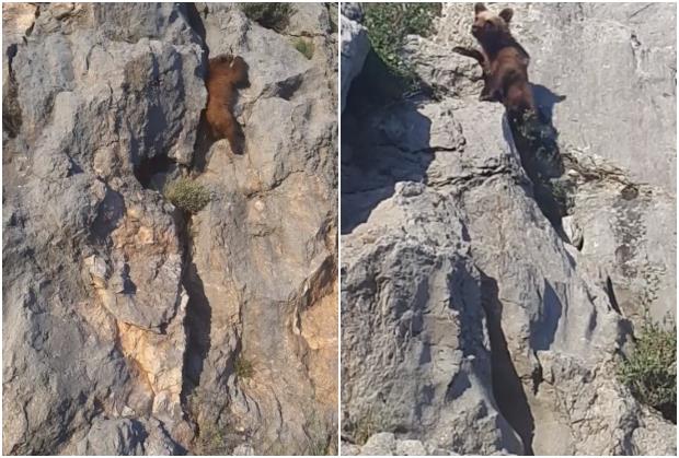 "Čim smo stali, meda se prepao i krenuo da beža. Penjao se po steni pa smo ga snimili", rekao je Švagelj koji je srećan što je imao priliku da vidi medu alpinistu.