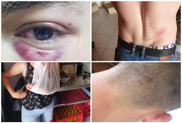 "Tog kolegu su nastavili da šutiraju. Nisu imali milosti ni prema meni, divljački su me šutirali na zemlji", ispričala je devojka kojoj ruka u zavoju. Ima modrice po celom telu, kao i njene kolege. Najteže je stradao Bračanin, inače vatrogasac. Njemu je slomljen nos na četiri mesta.