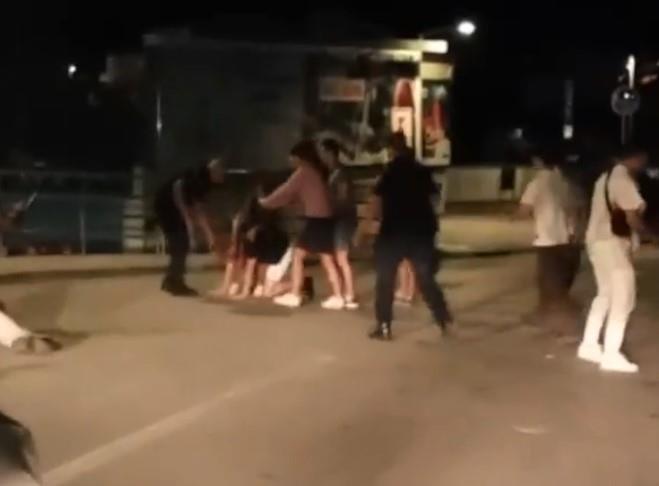U metežu su uglavnom učestvovali mladići, ali se vidi i jedna devojka koja je uporno htela da interveniše, ali je policajac pokušavao da je udalji.