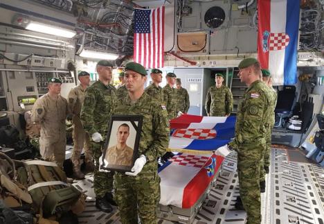 Američki avion u noćnim satima poleteo je iz Bagrama u Avganistanu, a ispratio ga je zapovednik NATO misije "Resolute Support" general Ostin Skot Miler, čime je stradalom hrvatskom vojniku iskazana najveća počast.