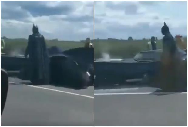 Naime, snimio je vatrogasce kako gase požar na "betmobilu", dok je superjunak Betmen stajao zbunjeno pored svog vozila.