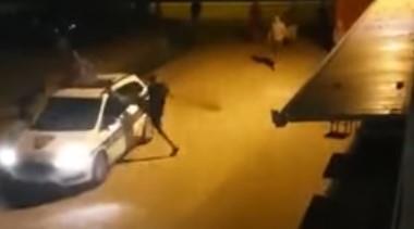 Napad se dogodio pre desetak dana u Brnazama, ispred kafića usred noći. N asnimku se vidi kako napadač izleće u trku iz ugostiteljskog objekta i iz zamaha udara nogom u policijsko vozilo sa službenim oznakama.