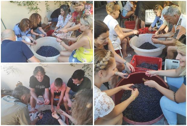 Posle ručne selekcije bobica grožđa u kome učestvuju svi prisutni gosti, devojke će bosim nogama gaziti grožđe i pretvoriti ga kako kažu ovde u "mošt" a potom daljom preradom na tradicionalan način, bez mašina i opreme, dobićemo 150 magnum boca najboljeg vina Imperator koje je godinama unapred rezervisano, ispričali su nam kratko domaćini Boris Mrgudić i Baldo Kangjera.