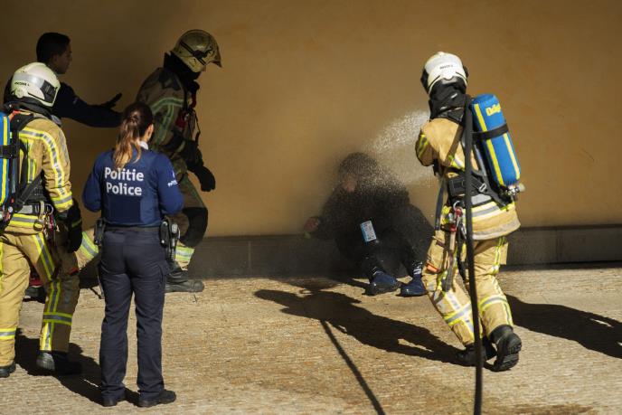 Na prostoru ispred zgrade Berlemont, sedišta evropske izvršne vlasti, muškarac je uzeo kanister s benzinom i uzviknuo nešto, ali ga je obezbeđenje brzo polilo vodom.
