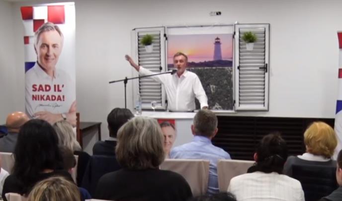 Hrvatski predsednički kandidat Miroslav Škoro poručio je na jednom manjem skupu da se ne boji da brani ustaški pozdrav "Za dom spremni" i da će, ako je potrebno, "prekopati Jasenova", a dan nakon što je snimak njegovog govora objavljen kaže da je reč o montaži.