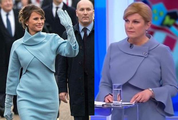 Konkretno, haljina i blejzer koje je hrvatska predsednica obukla za TV debatu gotovo su identični onome što je Melanija Tramp obukla na dan Trampove inauguracije u januaru 2017. godine.