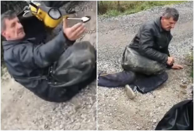 Kraj poštara je bio motocikl hrvatske pošte, a nepoznati muškarac koji je i snimio video, sve vreme je pokušavao da pomogne pijancu da stane na noge.