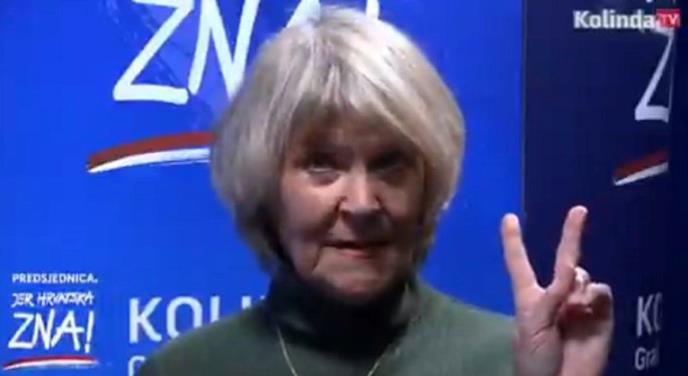 Tako je danas HDZ objavio na Tviteru i Fejsebuku snimak Kolinde koju podržava Žulijan Busić, suprugu Zvonka Bušića.