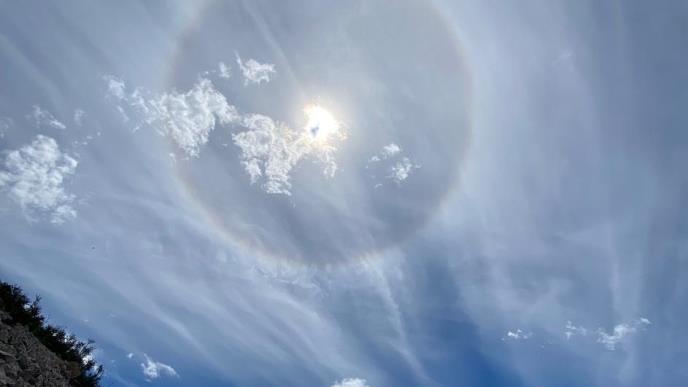 Prolazak sunčeve svetlosti kroz tanki oblačni sloj dovodi do prelamanja svetlosti koje se vidi u obliku prstena oko Sunca. Slična pojava se javlja i noću oko Meseca", objašnjava Alen.