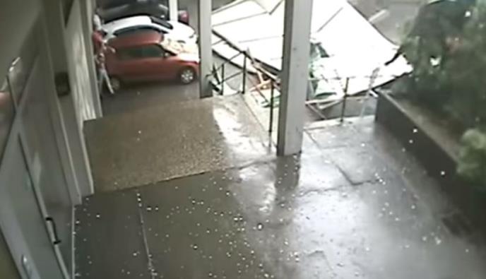 Naime, vozač automobila krenuo je da se parkira na natkriveno parking mesto kada je počeo da pada jak grad.
