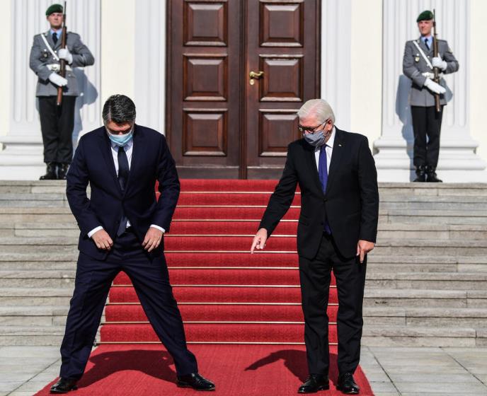 Ipak, na jednu meru je Štajnmajer morao da mu kaže posebnu pažnju. Kada su stali na crveni tepih, Milanović je prvo stao relativno blizu nemačkog predsednika, na šta se ovaj odmakao i rukom pokazao da treba da se pomeri i tako ispoštuje fizičku distancu. Milanović je tek tada, nakon opomene, to i učinio.