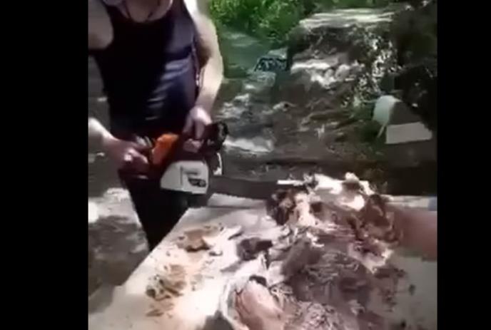 SNIMAK IZ OMIŠA POSTAO HIT NA DRUŠTVENIM MREŽAMA: Sekli jagnjetinu motornom testerom, komentari samo pršte (VIDEO)