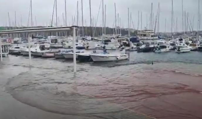 Zbog visoke vode zatvoren je saobraćaj Antenalom, uz ušće Mirne u more, a jaka plima prisutna je širom Istre i Kvarnera.