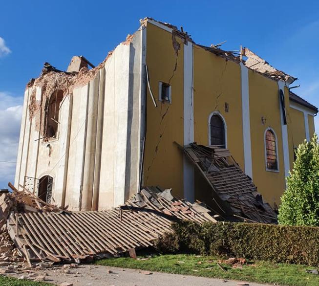 U Žažini u opštini Lekenik kod Siska u današnjem zemljotresu potpuno je uništena crkva.