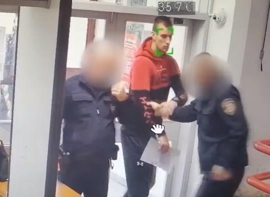 Mladić je, kako se vidi, išao prema izlazu. Nije imao masku, a prigovorio mu je jedan policajac. Ali onda ga je drugi policajac zgrabio za ruku i tu je sukob počeo. Čovek je, kako se vidi na snimku, uhvatio policajca za vrat. Ali odmah su ga sadvladala tri policajca.