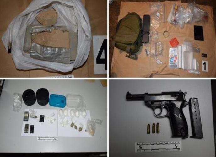 Kako su objavili policajci, on je bio samo jedan u grupi od ukupno deset osumnjičenika kod kojih su u pretresima pronašli više od 6 kilograma heroina, gotovo kilogram kokaina, više od 2500 komada tableta droge MDMA, preko dva kilograma amfetamina te 9 mm pištolj.
